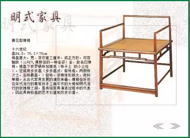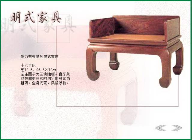 中国古典家具历经先秦的质朴浑厚、春秋秦汉的浪漫神奇、两晋南北朝的婉雅秀逸、隋唐的华丽润妍和宋元的简介隽秀,最终沉淀出质朴简练、古雅精丽的明式风格。明式家具有二十四美,形之大度,意蕴深远!。