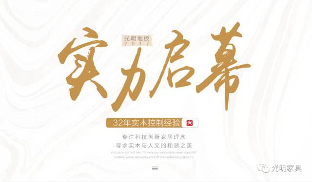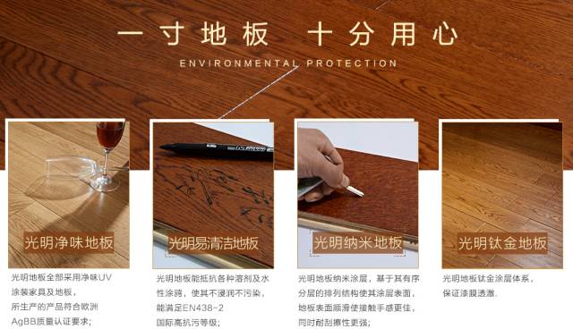 光明家具将在2017年推出自制地板系列,其中包含 净味地板、易清洁地板、纳米地板、钛金地板等功能地板,搭配实木家具完美融合,32年的实木控制经验,专注科技创新家居理念,寻求实木与人文的和谐之美。