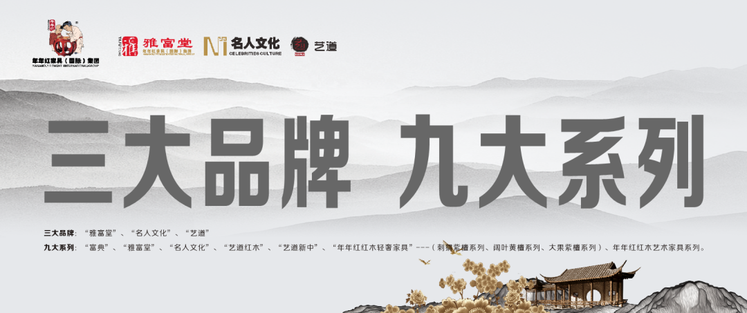 成功的品牌,永远走在时代前沿。年年红富典事业部着眼于时代特点,聚力打造三大品牌:“雅富堂”、“名人文化”、“艺道”。以不同的设计理念和风格样式满足众多客户的需求,得到了经销商的强烈拥护和消费者的无数好评,成为了行业焦点。“雅富堂”、“名人文化”的面世开启了红木品牌经营之路,带领年年红经销商突出重围;“艺道”红木的推出,更是锦上添花,是市场经营的强有力支撑。不动则已,一动惊人。富典事业部历经几年的沉淀,对市场需求的摸索愈加深入,不断引领中华传统技艺文化攀登高峰。2020年开始,年年红富典事业部倾心铸就九大系列:“富典”“雅富堂”“名人文化”“艺道红木”“艺道新中”“年年红红木轻奢家具(刺猬紫檀系列、阔叶黄檀系列、大果紫檀系列)”、年年红红木艺术家具系列。为提高人民生活品质尽心尽力,为传承中国传统文化鼎力奉献!