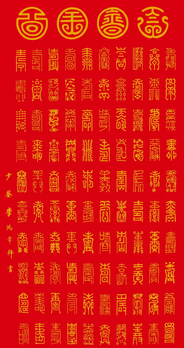 “寿”字虽不是最早的汉字,却是变化最多的汉字,在《中国万寿图谱中》,单一个寿字,就有13822个不同写法。这是世界上其他任何一种文字都无法达到的。