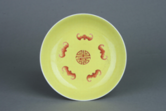 清嘉庆黄地矾红彩五福捧寿纹盘