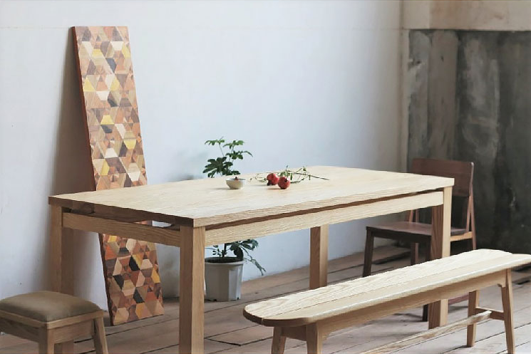 日式家具用橡木的比较多,木质颜色清新不厚重,一般用木蜡油进行表面的轻处理。木蜡油由亚麻籽油、棕榈蜡和豆油混合制成,不用担心有甲醛,有点味道也是正常的。木蜡油的作用如同一个加强对比度的滤镜,会让木纹的色差更明显,纹路也会更清晰。