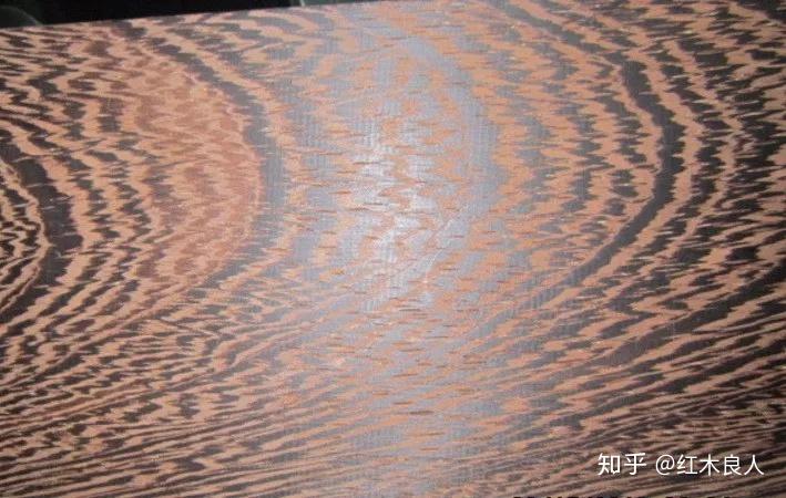 纹理炫理,颜色以灰黑为主。国内某航母级的红木企业,将其漂白染色成花梨木的颜色进行售卖。