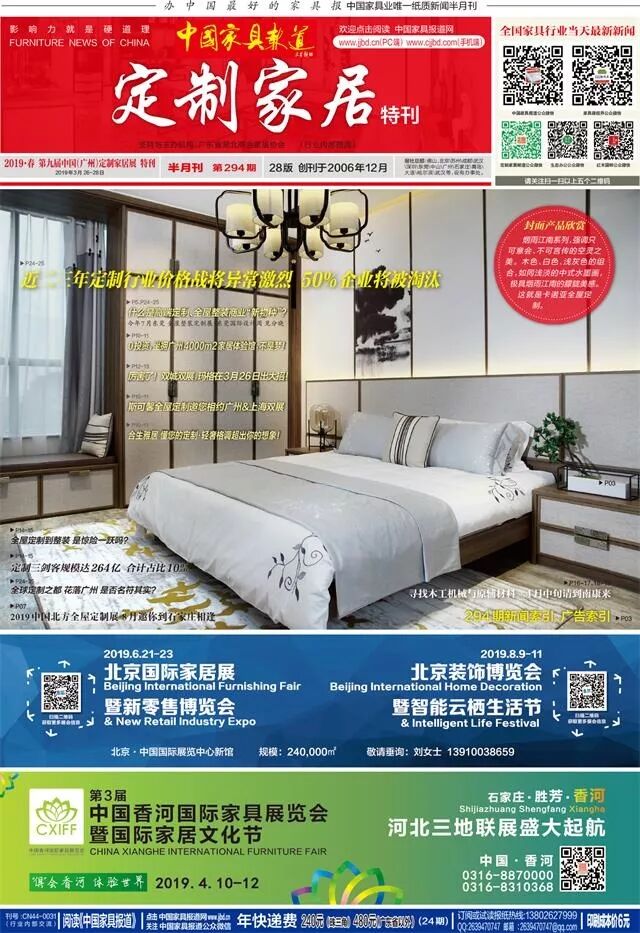 点击图片阅读中国家具报道2019年3月定制家居特刊月电子版