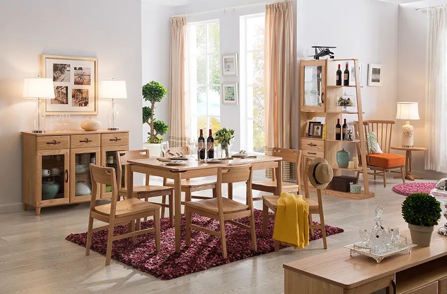像餐桌、沙发等家具均摒弃了繁复的装饰,保持它们原本的外貌,营造一种朴素、淡雅的家居氛围。
