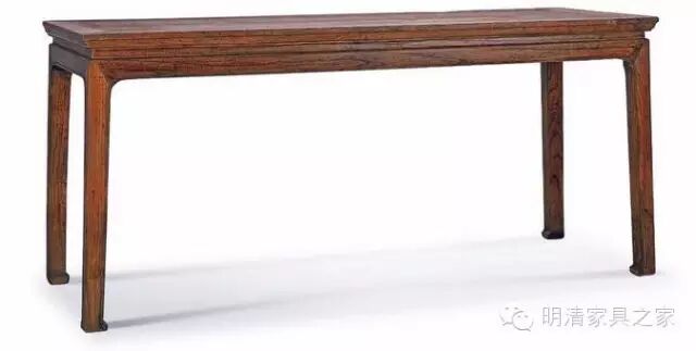 榆木有黄榆和紫榆之分。黄榆多见,木料新剖开时呈淡黄,随年代久远颜色逐步加深;而紫榆天生黑紫,色重者近似老红木的颜色。所以,北方家具以榆木为最大宗,有擦蜡做,也有擦漆做。榆木与其它材质共生,山西、山东、河北、河南等古家具大省随时可见榆木家具的踪迹。榆木家具制作年代跨度也大,从明早期至清晚期从未停止生产,其演变过程、地域特点都非常清晰。早期的榆木家具以供奉家具为主,比如供桌供案,形制古拙,多陈设在寺庙、家祠等处,因而才能保留至今。有一榆木雕制的木盆,无漆无饰,经长久抚摸和空气氧化,包浆油亮夺目,木纹苍老遒劲。百年遗物,完整无缺,抚之心动如酥。仿佛抚摸岁月沧桑的容颜。