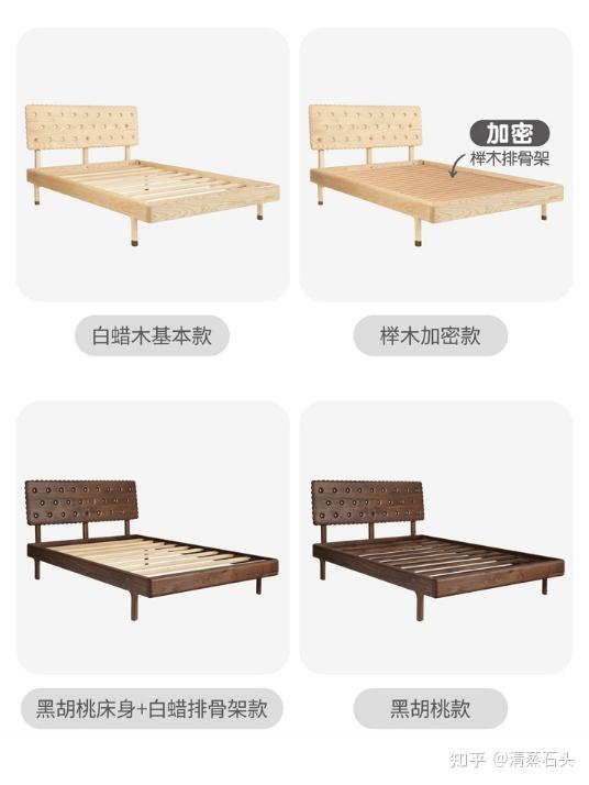 一套家具可能床头床尾用实木,床板是复合板材,也可能床头软包里面用的复合板材,或者床板与床头床尾用不一样的木材,很多时候是为成本价格考虑。
