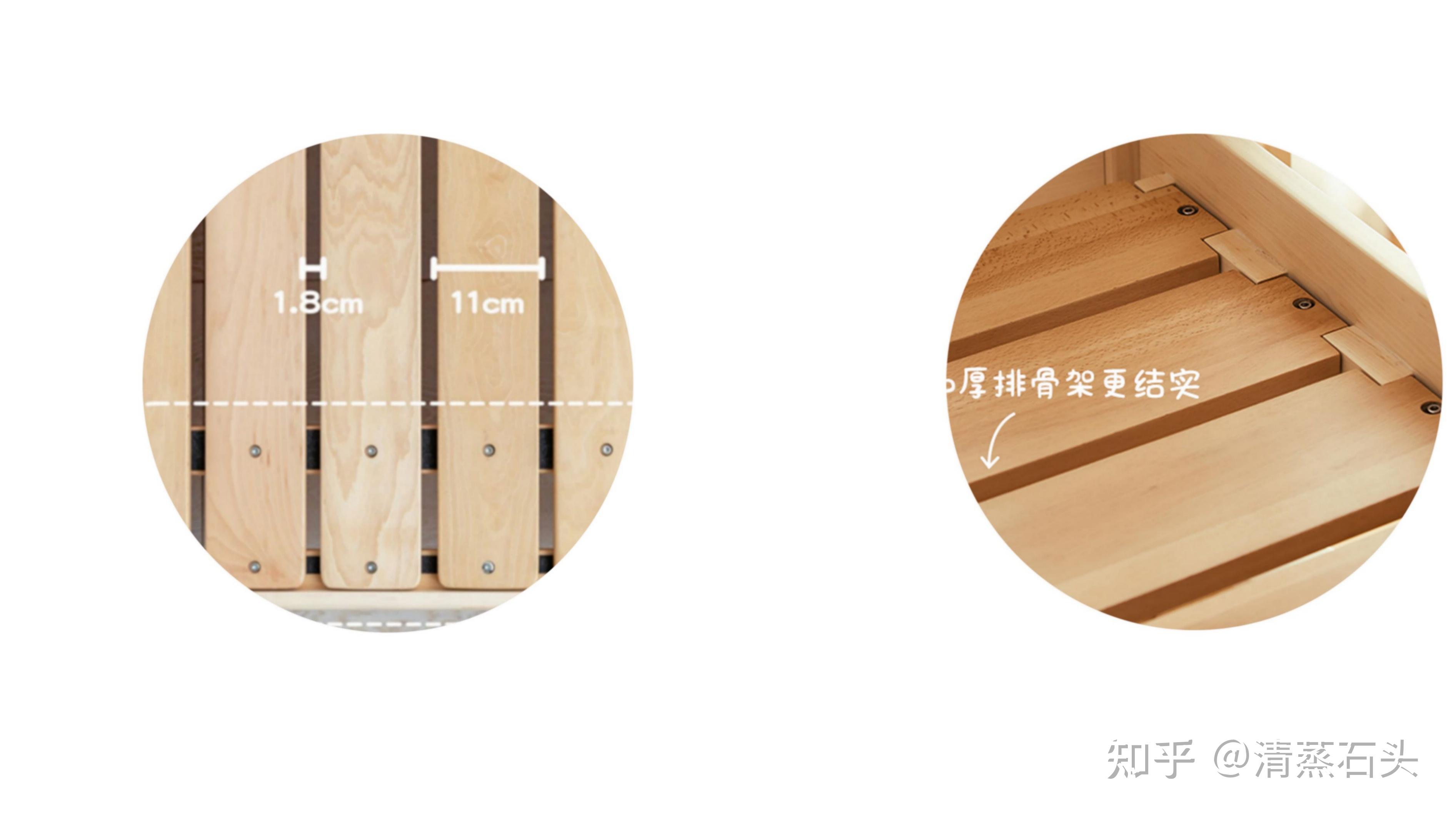从承重能力来看(宽度厚度相同) 榉木床板要比松木床板坚固耐用,这是木材本身的不同。
