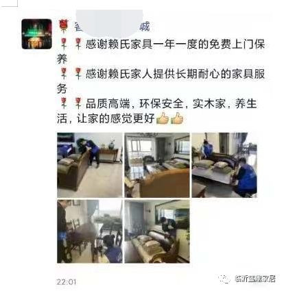 临沂蓝鼎家居连锁服务季陆续开启.位于居然之家(临沂店)赖氏家具的小伙伴们.早在一个月之前就预约好了需要上门保养维护的新老客户..尽量避开顾客的工作时间.在顾客的休息时间为顾客做上门服务的主要节点.让购买赖氏家具的新老顾客体验真正的高端服务