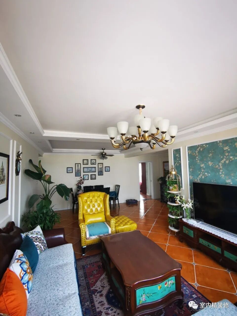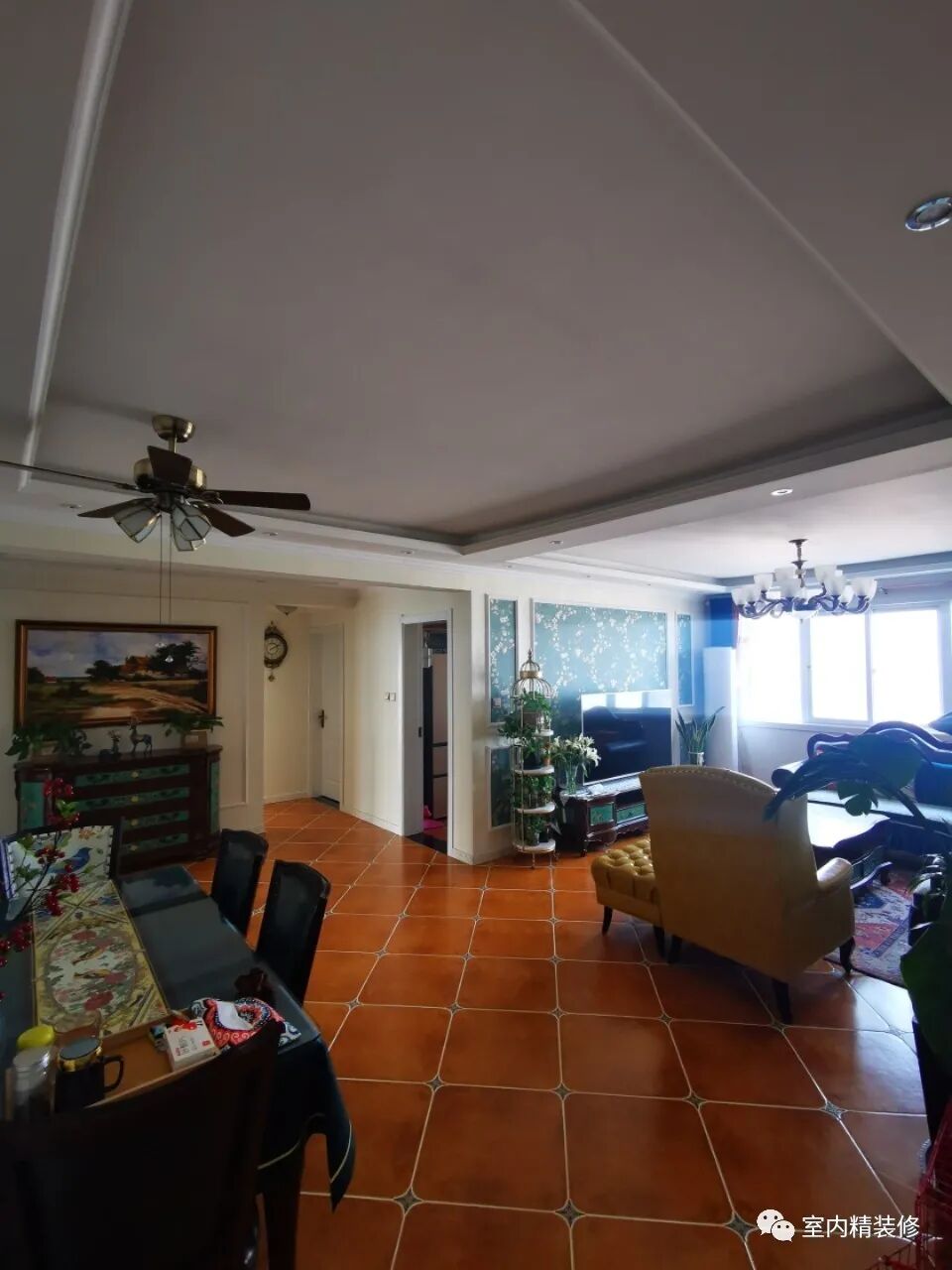 客厅和餐厅顶面安装了吊顶,刚好两个区域的吊顶分开,视觉上可以划分两个空间。地面铺贴的地砖真的效果太抢眼了,真心让人羡慕呀。全屋都是屋主自己搭配与设计,包括置办所有的家具等,准备可以搬进来入住了,一家人都很开心,很期待。