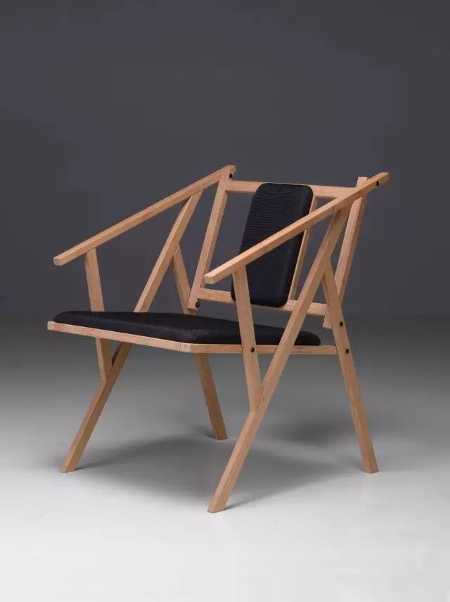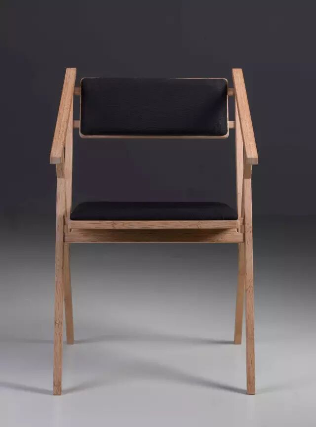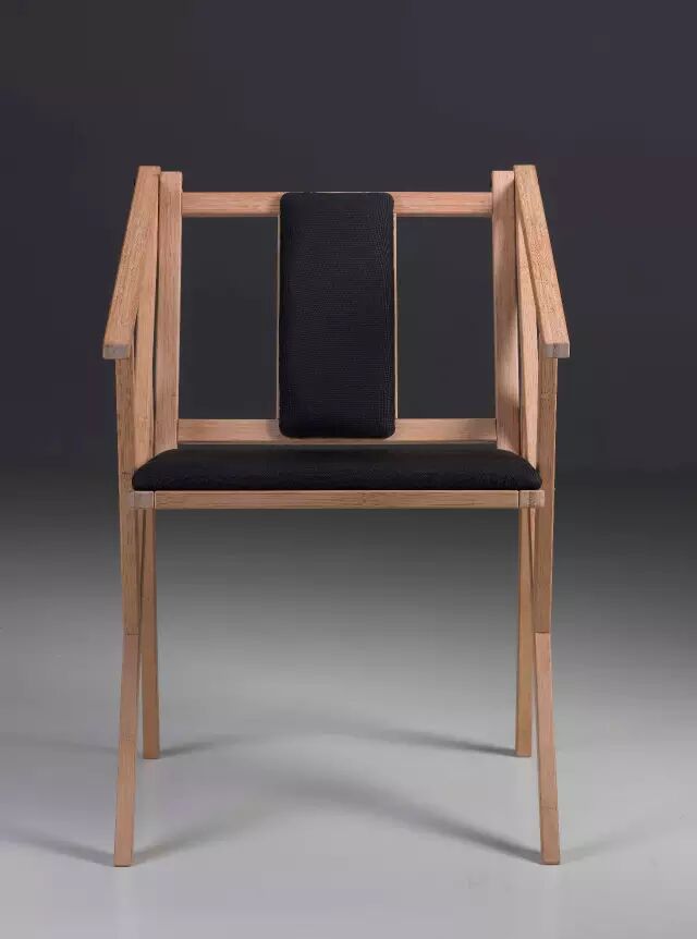 靠背形式是细长的直条形靠背。因为整体组合方式是榫卯、金属件混合连接,是西方惯用的连接方式,座椅风格更偏向西式。为了让人感受到中国传统元素,作者象征性地将四出头官帽椅的特点运用到这款座椅中,将靠背做成细长的长条形,增加了这款座椅的“中国”感。