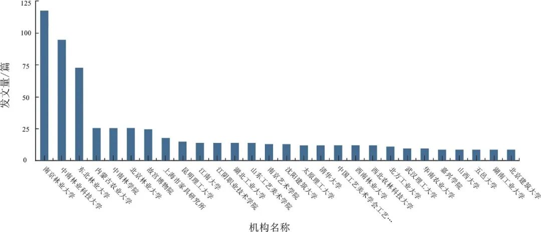 Fig. 2  Ranking of traditional furniture papers published by relevant research institutions