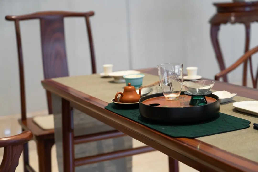 以绿色元素点缀的茶室,仿佛散发着青草与泥土的大自然香气,让人真切地感受到茶香的清新。一间闲适的休憩场所,一处更亲近自然的茶空间,我们在做的不仅仅是品茗,交谈,还是感知“生活的当下”。