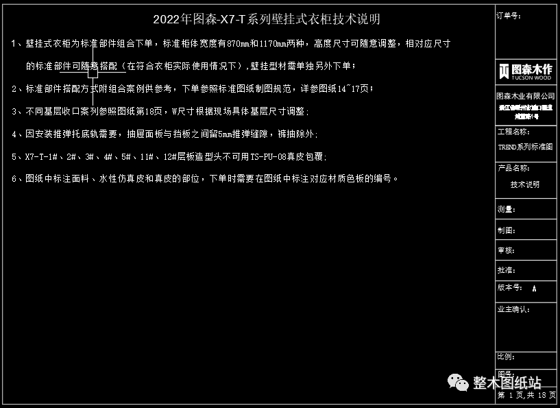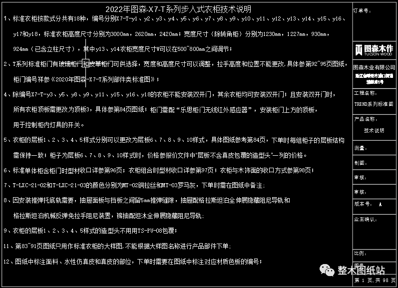 . 《2022年图森-X7-T系列中岛柜标准图》《2022年图森-X7-T系列壁挂式衣柜标准图》