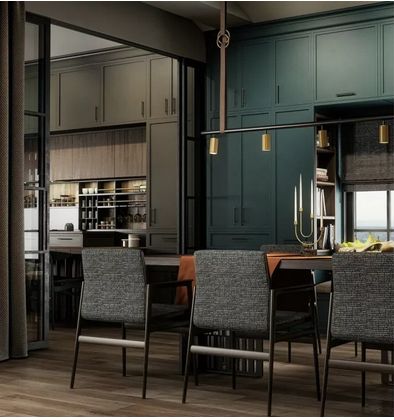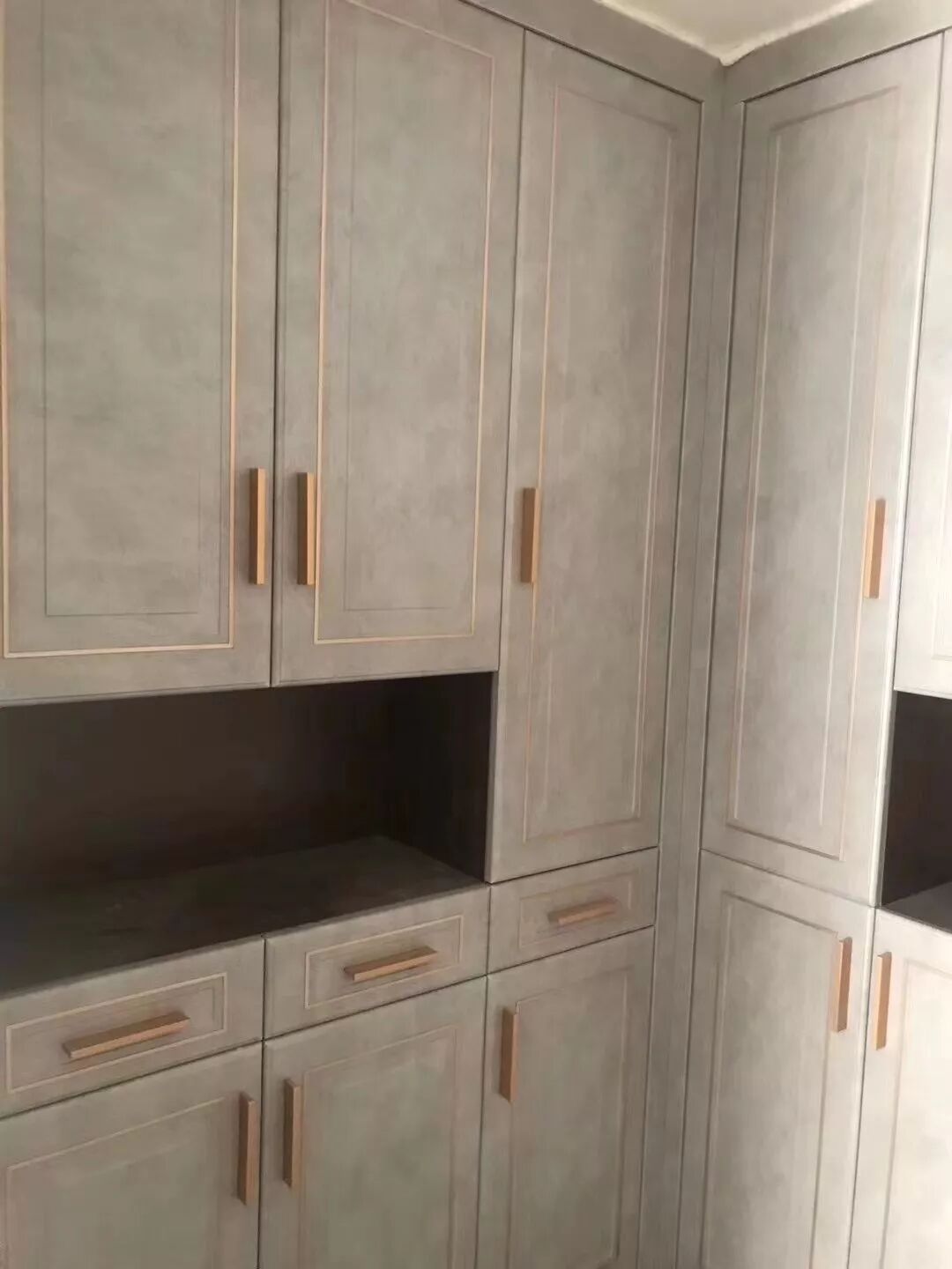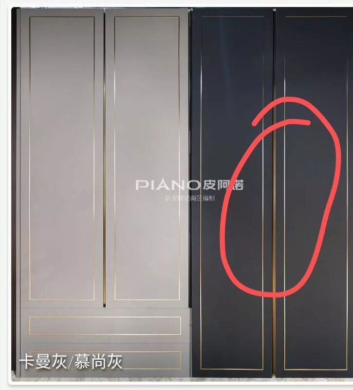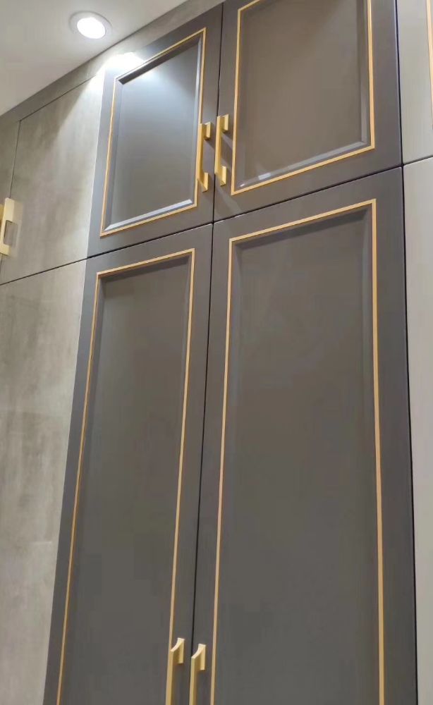 我们通过中性、低彩度的颜色与简单门型搭配,用金属线条的装饰来完成该系列的门板配套。