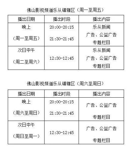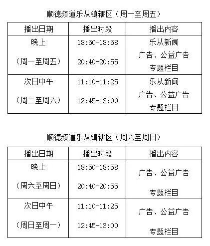 乐从广播电视站节目播出时间表