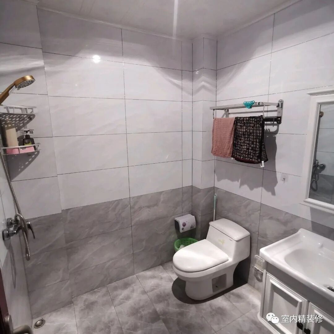 主卧卫生间并没有做干湿分离,其实做干湿分离位置还是足够的,地面铺的瓷砖很耐脏,偏灰色。