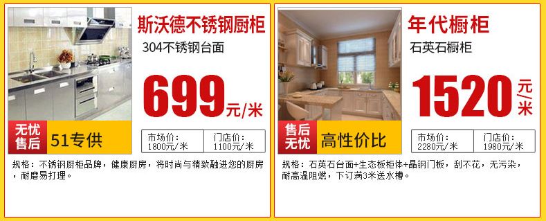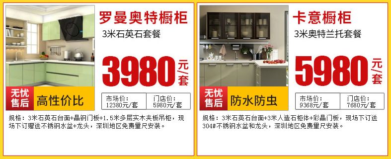2、是否独立柜体:整组连装的橱柜会影响牢度,所以大家在选购整体橱柜时要问清楚,二者使用寿命和稳定性相差2至3倍,成本相差5%。可以通过包装和装好的柜体来鉴别,如果独立柜体单柜组装的话,每个柜子都应该有一个独立的包装;还可以在柜体安装好台面前观察出来。使用防蟑静音封边的柜体,柜门关闭时冲击力得以缓解,消除噪音,防止蟑螂等虫进入,有没有防蟑封边的成本相差3%。还要查看台面板、门板、箱体和密封条、防撞条是否经机器膜压处理,是否正反两面一封压制而成。密封条封闭不严,会造成油烟、灰尘、昆虫进入。