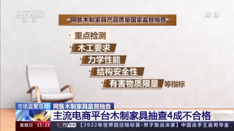 市场监管总局最近发布了针对网售木制家具的监督抽查,抽样都来自主流电商平台,抽查不合格率是40%。