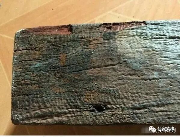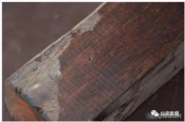 切面:并非所有拆房料切面都如同外表一般黝黑,也多呈现暗红色,但真正檀香紫檀料切面氧化速度惊人,最快者几个小时内颜色逐渐变黑。