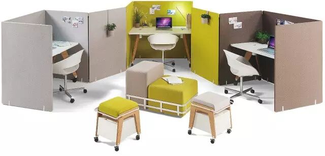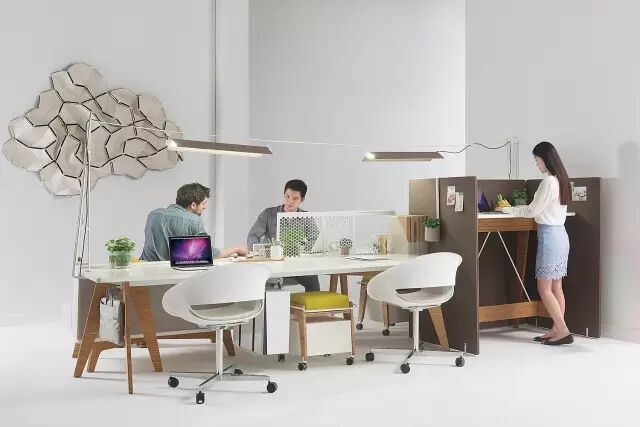 不同高度的家具,会带来不同的视角,能激发新的灵感。零碎的想法可以用便签记录,粘贴在隔断板上。