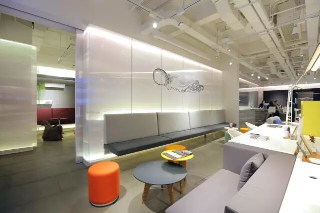 办公区,沙发休闲区以及书柜学习区结合在一起,打破了传统办公区与讨论区的隔断,可以随时分享。