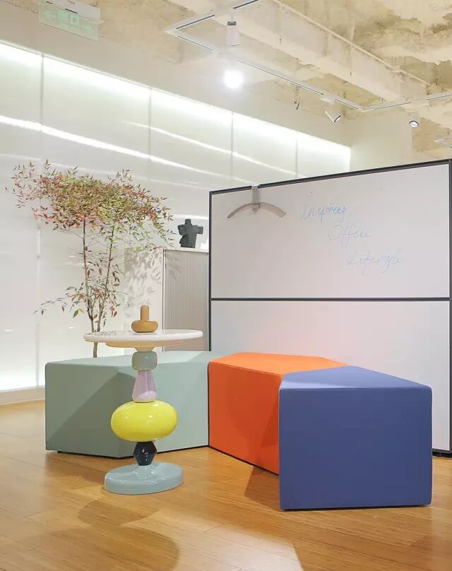 来自德国的两位空间设计师 Andreas 和 Simon,在上海这个办公家具展示空间里,使用了大量的创意家具,既保护了个人的私密性,开会、喝咖啡、沙龙等开放性功能,也一样不缺。