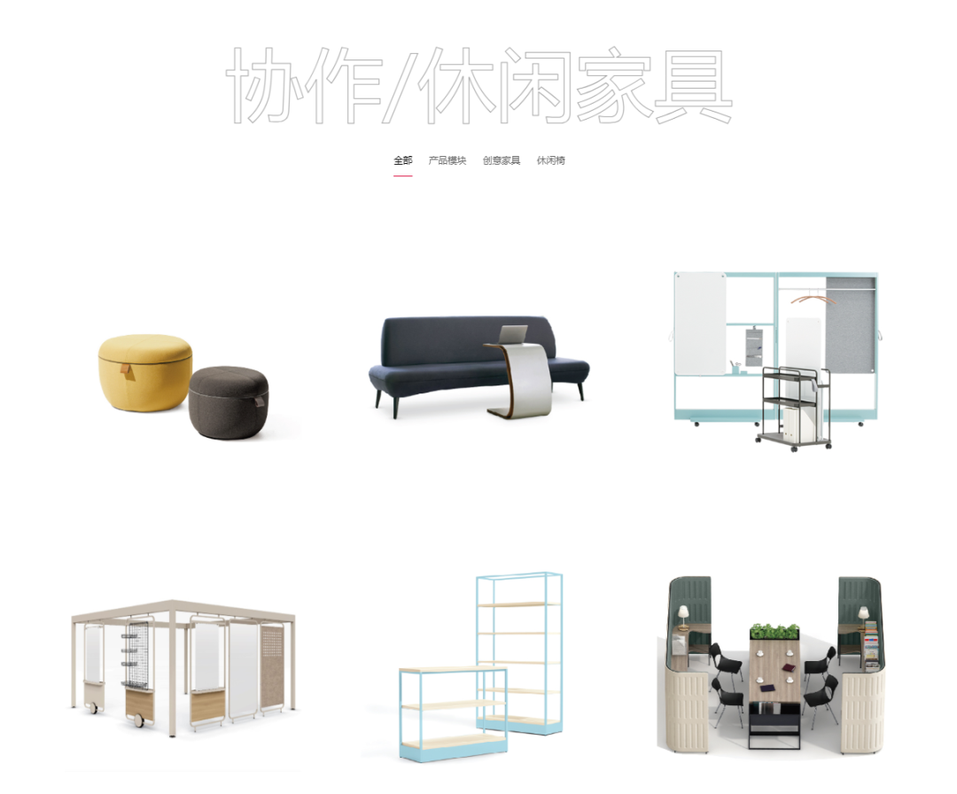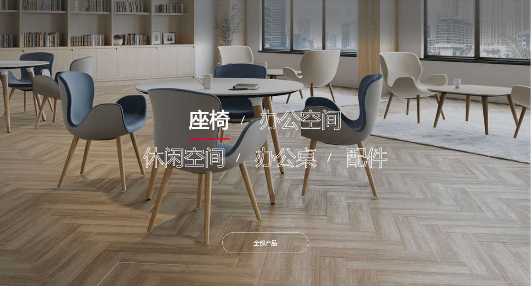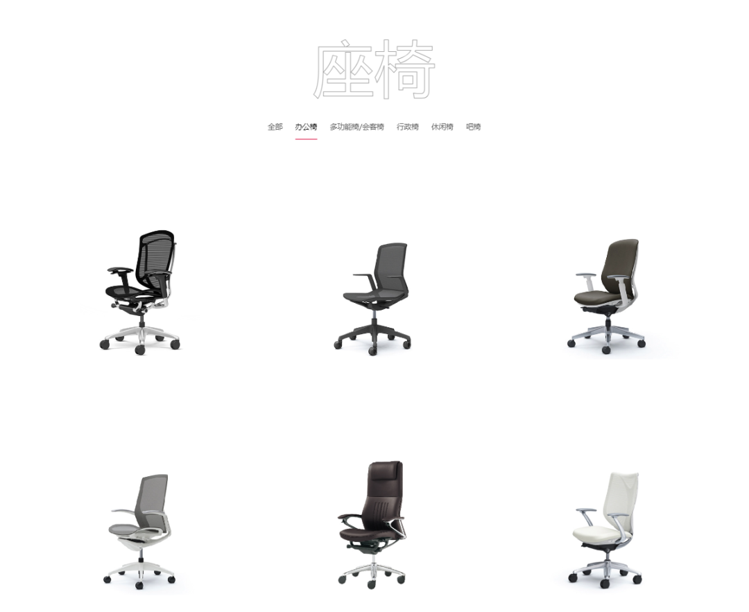 重点栏目介绍产品我们将产品进行了分门别类,比如座椅、办公桌、休闲家具、配件等等。简约清晰的产品列表设计,希望大家可以迅速找到心仪的家具。