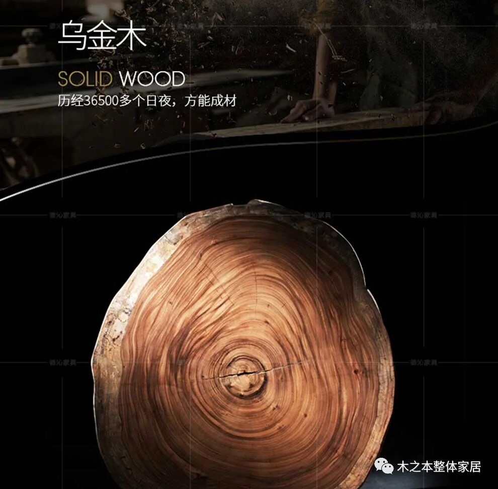 乌金木是一种珍贵的木材,它表面的纹理、颜色具有独特性,做成的乌金木家具表面有金色和黑色的曲线相互交织,颜色醒目,而且极具流动的视觉感。