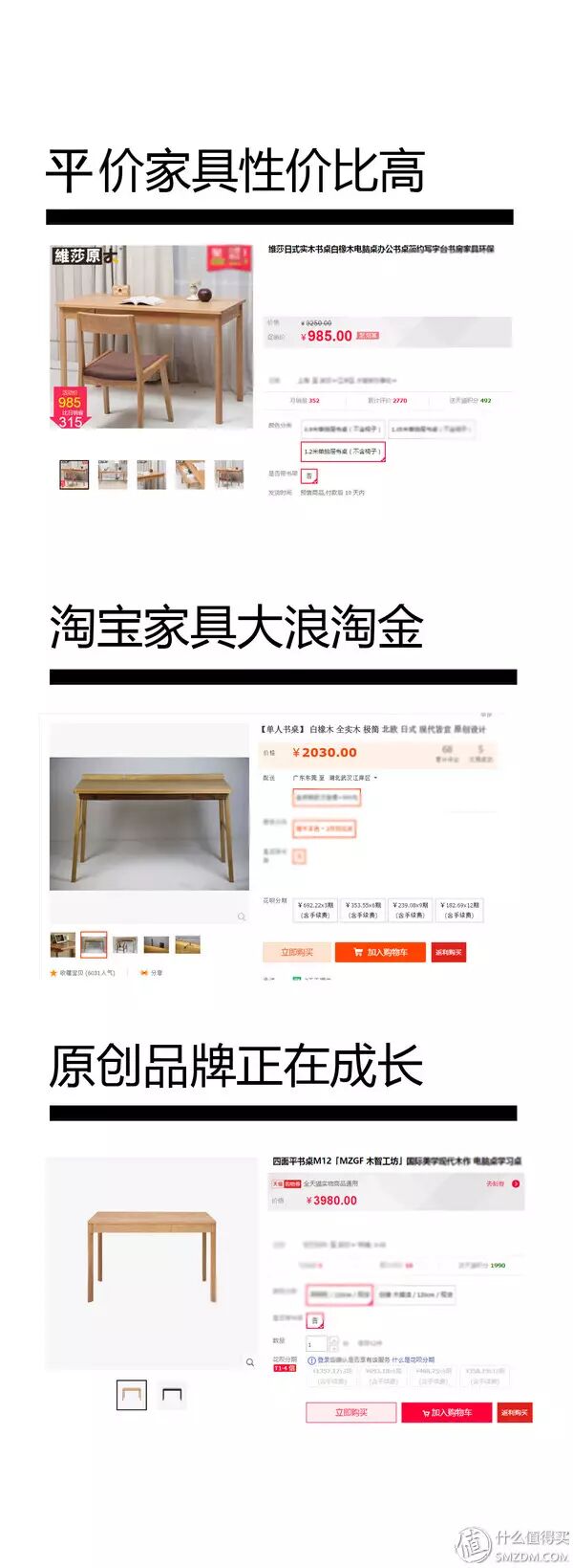 同一种木材,以白橡木书桌为例子,淘宝上价格差距也是十分大的。
