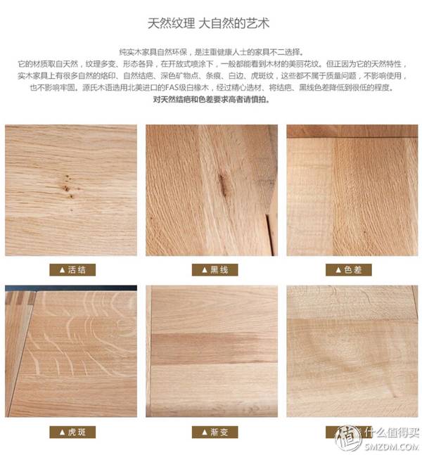 下面截图来自源氏木语,清楚展示了实木的天然纹理瑕疵。
