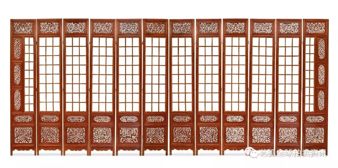 明末清初 黄花梨螭龙捧寿纹隔扇 (十二扇)