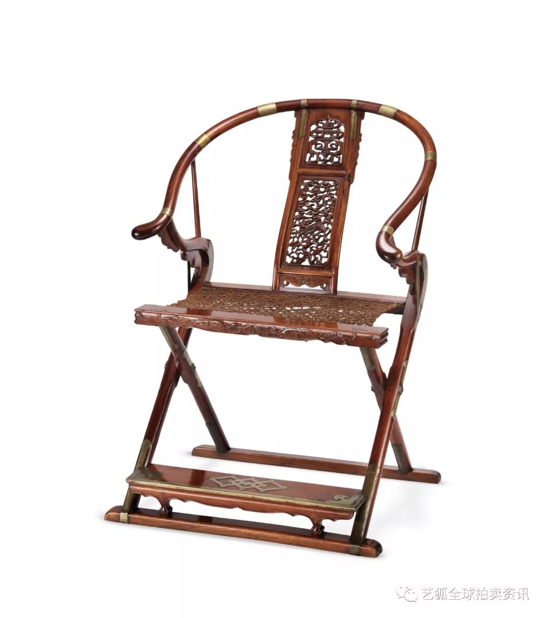 明末清初 黄花梨麒麟寿字纹圈背交椅