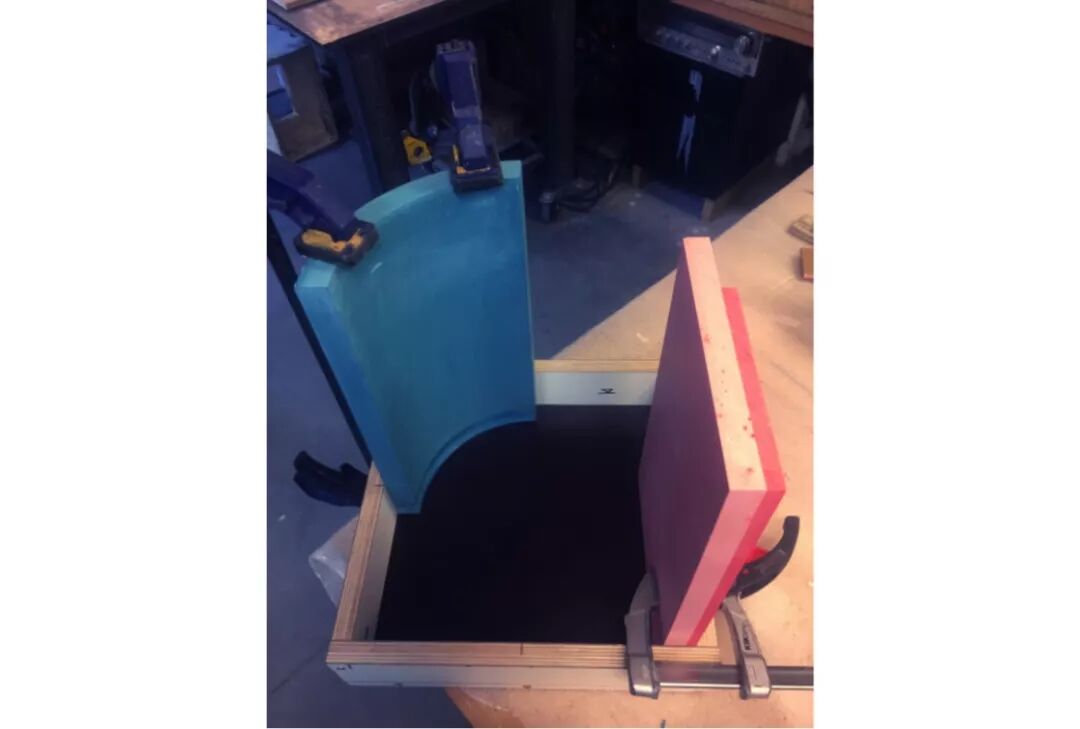这些边桌是夫妻俩对于「丙烯酸树脂」材料的研究成果,这种材料既可以制作模塑,同时也兼具坚固和易于着色的特性。