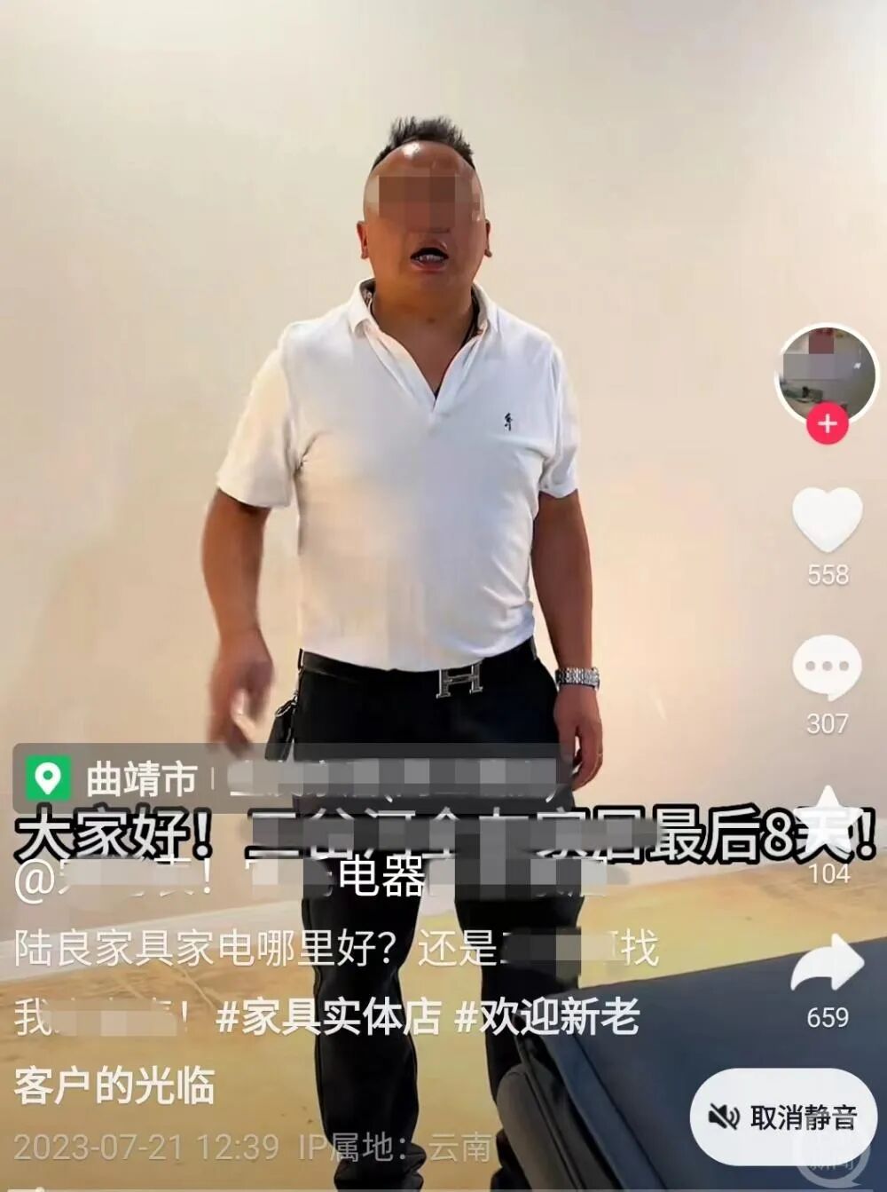 据上游新闻(报料邮箱:cnshangyou@163.com)记者采访获悉,白衣男子系陆良县三岔河镇的一名家具店老板,其经营着某视频平台账号,在当地小有名气。