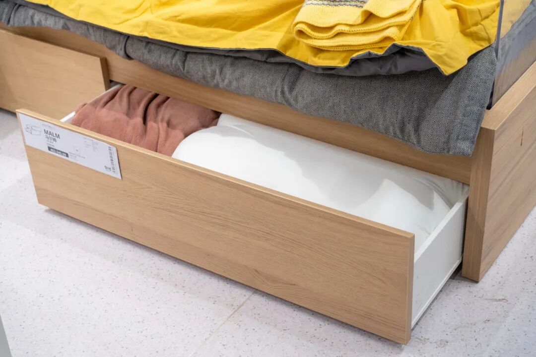 不到3000块就能拿下的马尔姆高床架,别看它设计简洁,其实床下大有玄机,内藏4个抽屉超能装,用来放被子、枕头刚刚好。