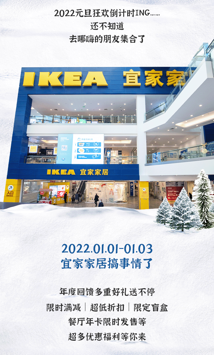 上到床垫、沙发,下到儿童玩具,你能想到的统统都有,偷偷告诉你,2022.01.01-2022.01.03,连续3天,会员商场购物可得3倍积分,还等什么呢,这个元旦快和小编一起逛宜家吧。