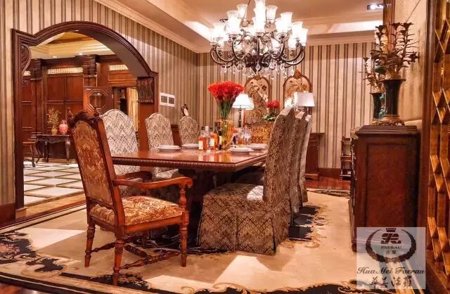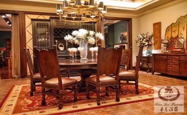 目前的美式家具油漆多为深红色或褐色。为了突出家具材质本身的质感和价值,它的贴面采用复杂的薄片处理,使纹理本身成为一种装饰。