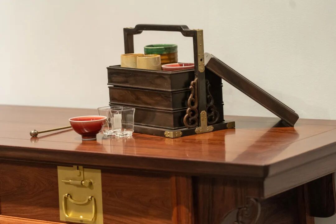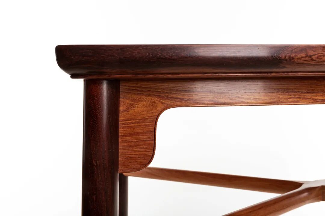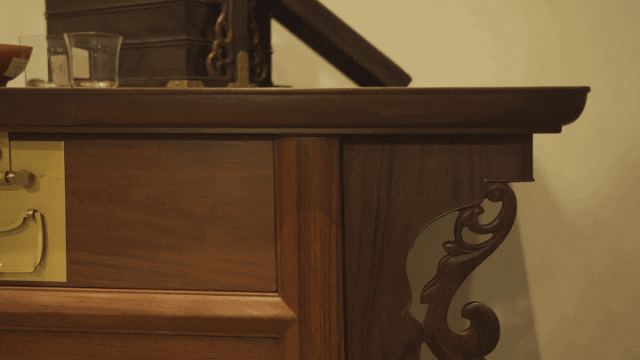 从入室的攒框板足琴几,置于正中心的十字枨小画桌,及身后的卷草牙子联三闷户橱,就连坐落在角落的灯台、香几、平头和圆角柜,每件单品不仅单独看起来雅致沉稳,它们结合起来也非常相衬,不会互相“争抢”。