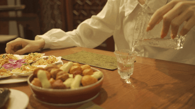 设下夜宴,长桌上,宴设、宴乐、宴饮、宴集、宴语,美酒与佳肴,宴客被此刻的氛围打动,举杯共饮,感知“生活的当下”,享受内心片刻的欢愉。