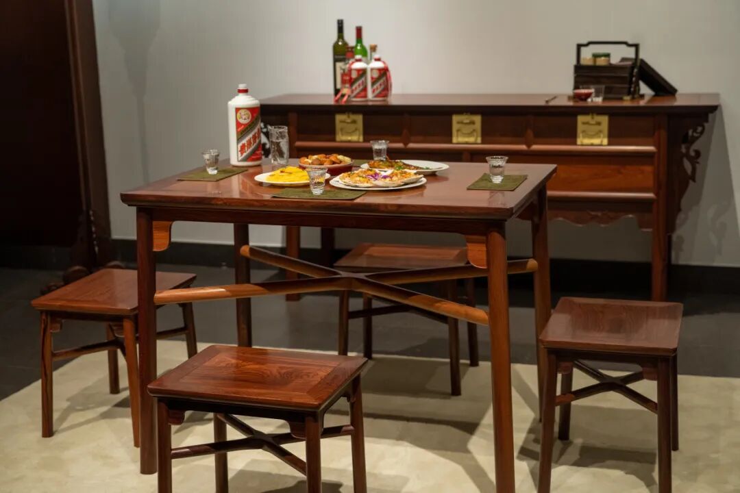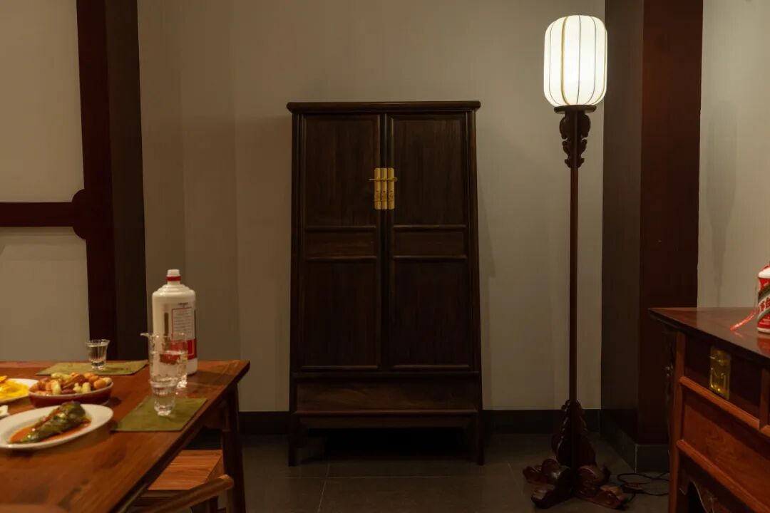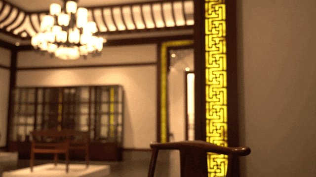 一间酒室,不仅仅是觥筹交错的地方,还是一个敞开心怀的秘密基地。结合古典家具自然纹理的特点,精磨工艺保留原木质朴而真实的材料质感,整体空间配色选自山林,水石和古朴红木的颜色,从而“将室内和室外结合成一个空间”。