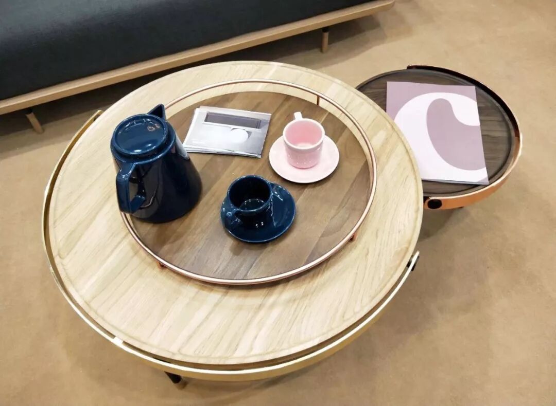 他们的产品理念是“主要房间的次要产品和次要房间的主要产品”,所以他的产品体量都不大,基本是茶几柜架这类。材料元素是木头、漆面金属、黄铜,所以看起来比较有现代感,它的设计不会局限在某个空间,可以用在客厅、餐厅甚至卧室。