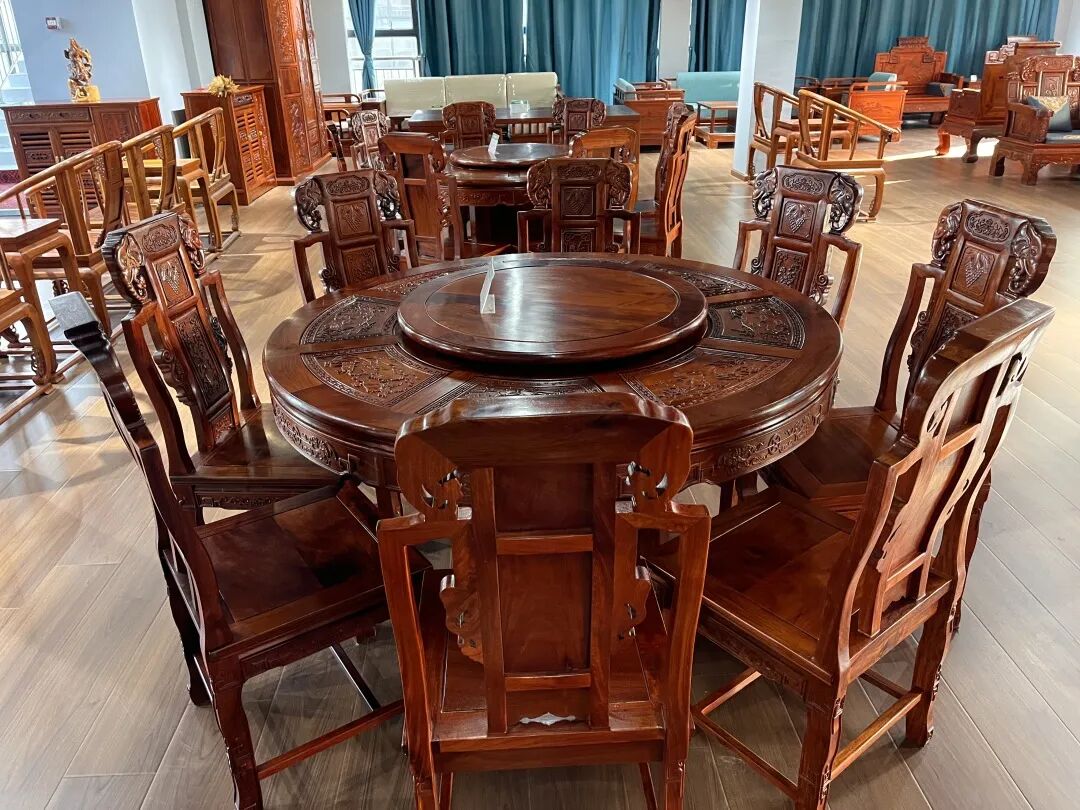 高贵典雅的圆桌经过了精心的雕制,其木纹清晰,充满质感的艺术效果,显得低调而不张扬。