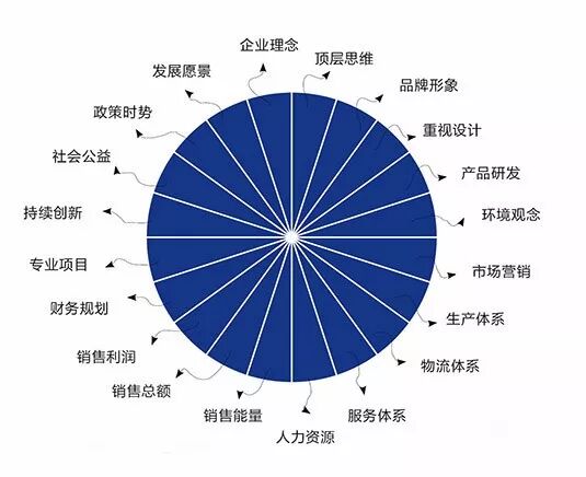 着行业发展与经营趋势的变化,从全球行业的发展与国内行业现状,综合出企业经营的二十项指标,牵涉的项目几乎包括了观念、整合、布局、模式、运营、转型、政策、合作、国际、策略、文化、认证、组织、人力、薪酬、福利、培训、业绩、费用、利润、资金、财务、营销品牌、宣传、媒体、建筑、景观、室内、产品、展会、画册、资料、设计、环境、营业、价格、支援、经销、渠道、电商、客户、物流、服务、工厂、生产、设备、技术、组装、协力、调查、研究、知识、信息、归档、标准、产权、法律、公关、环保、公益......二十项指标的基数可以设定从0到10,十个层级,其基本概述如下: