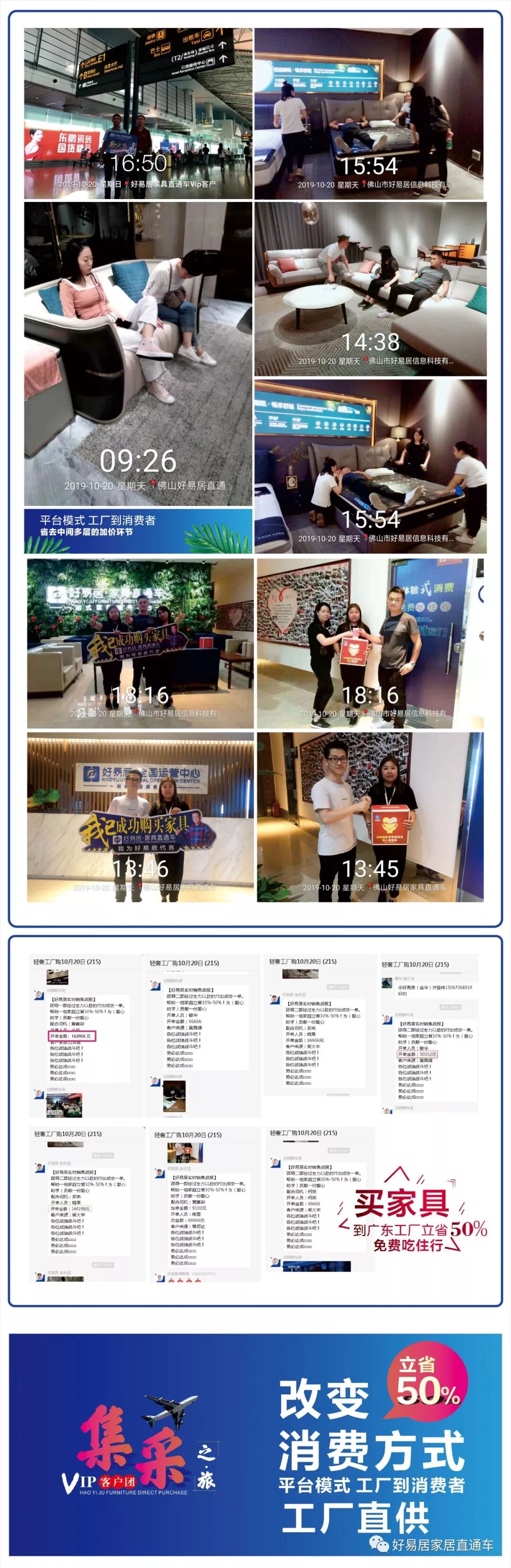 好易居秉承为消费者省钱、省心、省时,买到最具性价比的家具为目标,全力打造消费者与工厂无缝对接的服务平台。好易居VIP客户团选到心仪家具工厂现场下单,并合影留念。