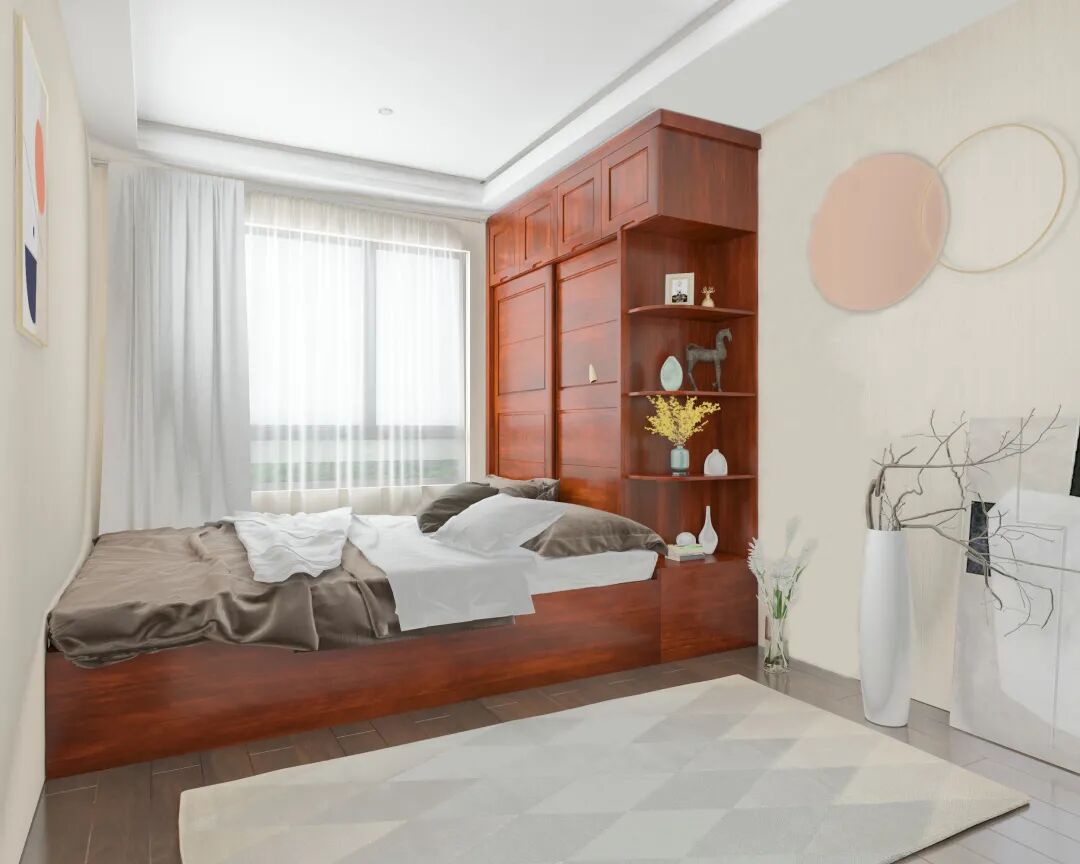 华日整装采用“隐形衣柜”、“整墙衣柜”的设计方法。