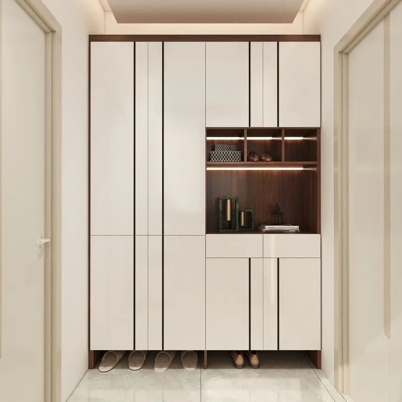 入户玄关,是进门的第一道风景。推门进来,首先映入眼帘的是入户玄关,除了解决鞋子乱扔的收纳外,如何打造颜值在线的入户生活礼序显得尤为重要。