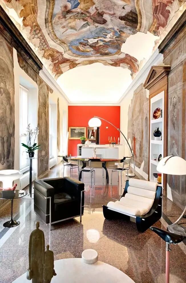 即便墙、地和顶的装修风格非常古典,也使用了20世纪的经典家具