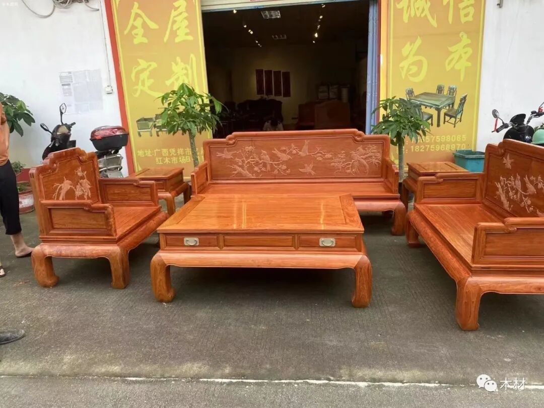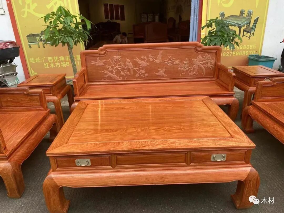 2、凭祥龙之涵红木家具缅甸花梨木是花梨木中之佳材,其树脂较多,木材油性重,树脂可用作红色染料,被列为珍稀木材的一种,材质是决定沙发家具能否升值的一种重要因素。