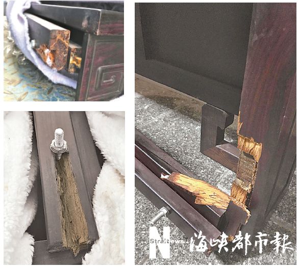 潘先生说,当时他也联系了韵达福州公司,相关负责人赵先生告知,将安排人员对家具进行修缮,并派人取走了破损的家具。几天后,还回来的家具仍损坏严重,他无法接受。